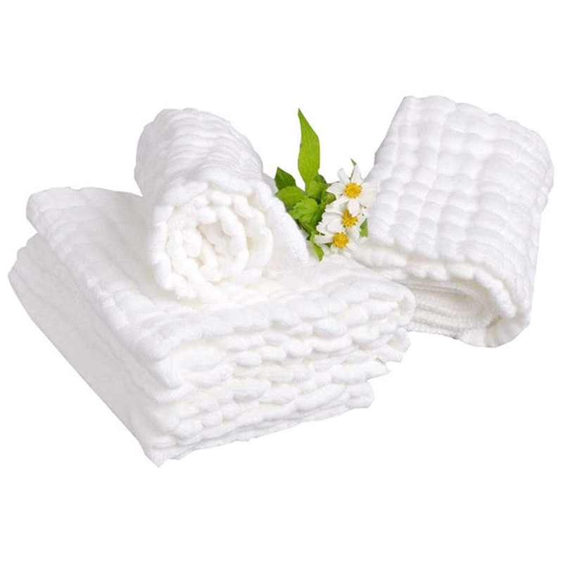 Baby Muslin Bath Towels, 10 Pack Of Reusable Soft Absorbent Cotton Baby Face Towel, for Baby’s Delicate Skin White