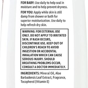 One 20-fluid ounce bottle of baby oil with aloe vera and vitamin E Helps to seal in skin moisture and