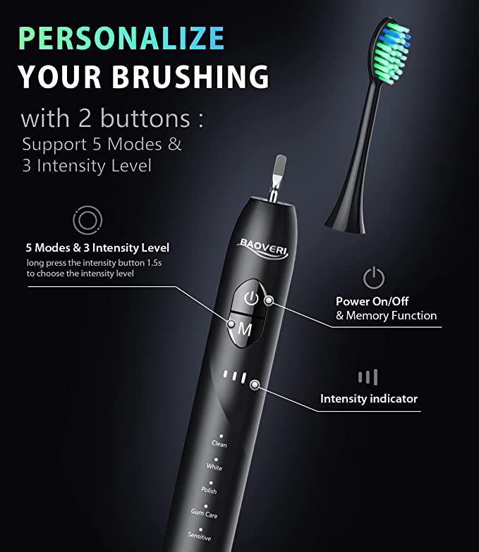 - What You Get:1 Sonic electric toothbrush, 8 DuPont brush heads, 1 charging cable, Instruction manual, Warranty and support contact manuals.As an USA brand, BAOVERI provides the highest quality health, wellness and beauty products at affordable prices while maintaining world class product and customer support.
