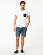 Men’s Unique Style White T Shirt With Black Pocket