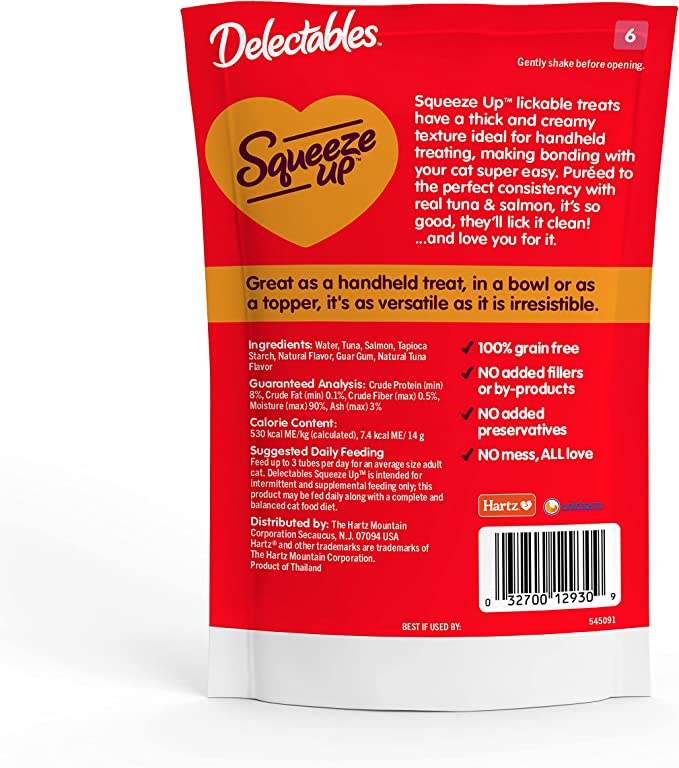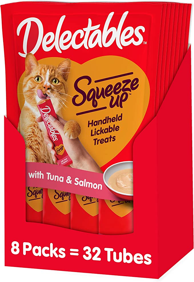 - CONTAINS: This pack of Delectables Squeeze Ups contains 32 (0.5 ounce eaches) squeezable cat treat tubes.